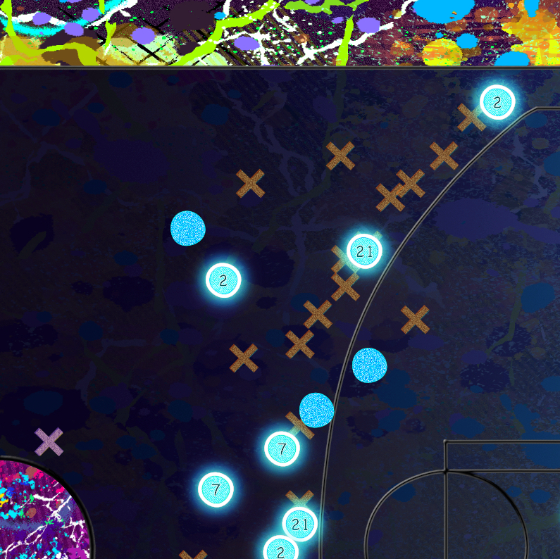 All-Star Games are really fun artworks to work on in my Shot Chart series, simply because there are a lot of made shots! This was an offensive exhibition by both teams, who basically allowed each other to do whatever they wanted from a scoring perspective. In this game on February 20, 2023, Jason Tatum (#0) led Team Giannis (in yellow) to a 184-175 victory over Team LeBron (in blue) by scoring 50 points. Hilariously, Donovan Mitchell (#45) scored 40(!), followed by 26 points by Damian Lillard (also #0). All three player's point totals eclipsed their respective total minutes played, and together the three of them scored 136 points! Also, take note those long distance three's that Mitchell and Lillard made, including a half-court shot by Lillard.